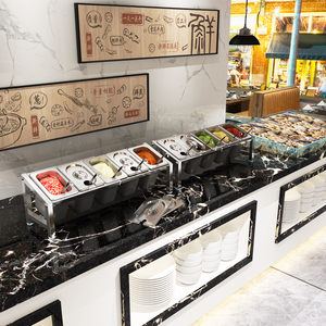 小料台是低成本却高感知的细节:一方面,南北顾客口味差异大,自助小料能让每个人调出“自己喜欢的味道”,比如吃火锅时,有人爱麻酱、有人爱油碟,无需服务员反复沟通;另一方面,整齐摆放的小料、干净的餐具,能间接体现餐厅的卫生标准,让顾客觉得“贴心又靠谱”。